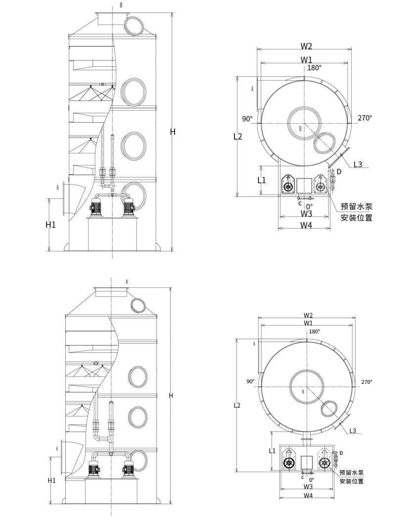 Uri 2: Split-type water tank cyclone scrubber (Tower diameter: Φ2500mm-Φ3500mm)